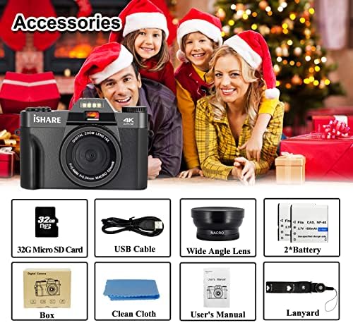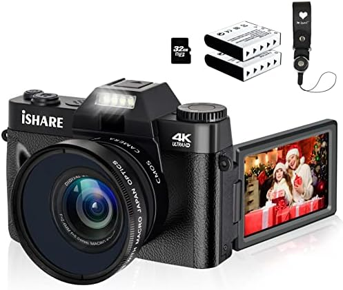 Home Electronics Camera ISHARE Digital Camera for Photography 48MP Vlogging Camera, 4K Video Camera for YouTube with WiFi, 3.0 Inch Flip Screen, 16X Digital Zoom Camcorder with 32GB Micro Card