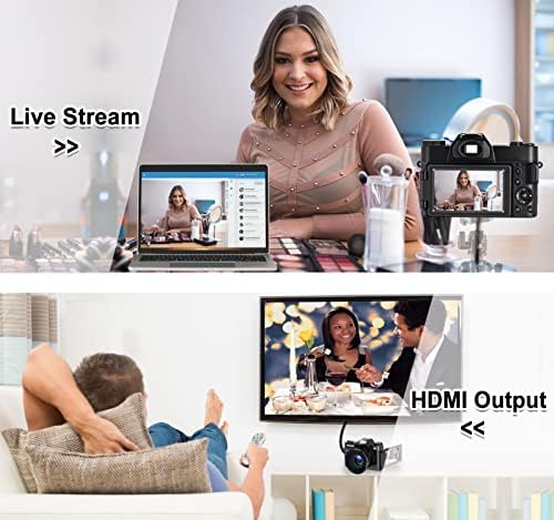❤【Best Choice for Amateurs】 This 4K youtube camera has Pause function, Motion Detection, Loop Recording, Continuous Shooting, Silent Recording, Self-Timer, Flashlight, and is also equipped with a wide-angle lens, you can take pictures you want as you want. And you can connect to the HDTV directly via HDMI cable (included). The camera screen can be rotated 180° and can also be used as a webcam to broadcast live on the platform. Its a best choice for amateurs.