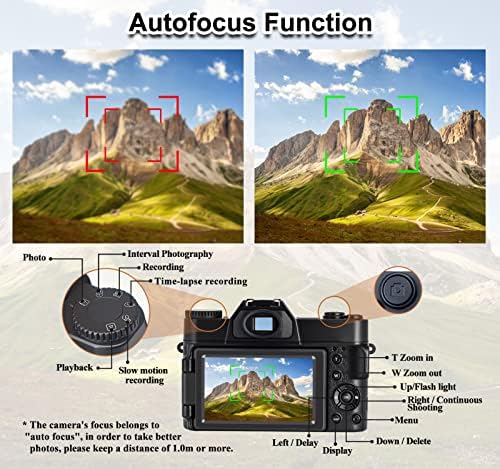 ❤【Easy to Use】 The turntable at the top of the digital camera has photo, video, time-lapse, and album modes, which can easily switch the camera mode, which is simple and fast. And this digital vlogging camera uses a rechargeable 1500 mAh lithium-ion battery, which can be used multiple times, And this camera supports recording while charging, allowing you to plug into alternating current or a power bank for charging to continuous use.