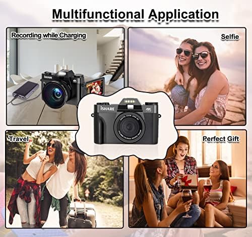 ISHARE Digital Camera for Photography 48MP Vlogging Camera, 4K Video Camera for YouTube with WiFi, 3.0 Inch Flip Screen, 16X Digital Zoom Camcorder with 32GB Micro Card