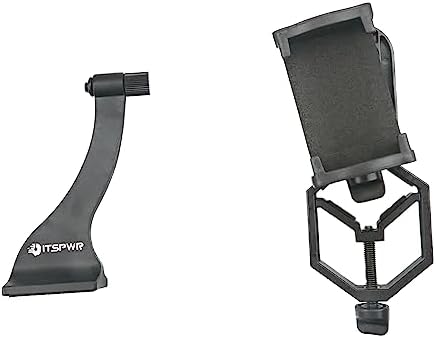 ITSPWR Telescope Phone Mount: Compatible with a wide range of monoculars, binoculars, astronomical telescopes, and spotting scopes, suitable for telescope objective lens diameters ranging from 28-50mm. The phone slot can be adjusted from 55-91mm, and the phone clamp rotates 360 degrees for versatile positioning. Made of durable ABS material for long-lasting use.