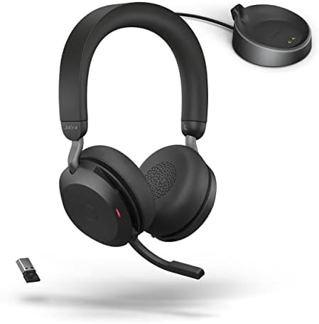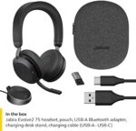 Jabra Evolve2 75 PC Wireless Headset with Charging Stand and 8-Mic Technology – Dual Foam Stereo Headphones with Advanced Active Noise Cancelling, USB-A Bluetooth Adapter and UC Compatibility – Black