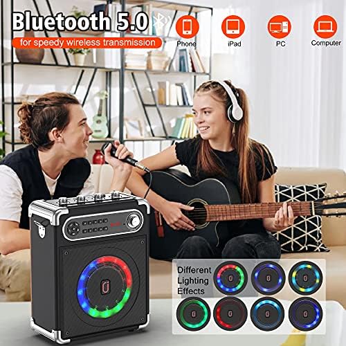 Colorful Disco Lights: This PA speaker system is equipped with colorful disco lights. Independent button to switch lights. The colorful LED lights create pleasant and romantic karaoke and party vibe for you.With this karaoke machine,you can enjoy a colorful and cheerful party.