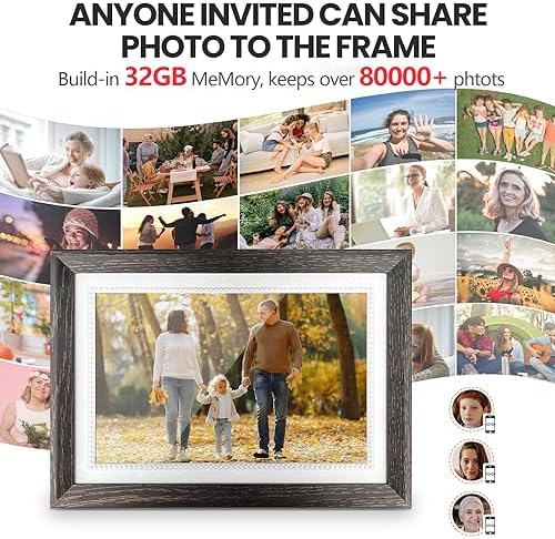 [Auto-Rotate and Large Storage] The Frameo digital picture frame comes with an auto-rotate function, allowing you to place it in either portrait or landscape mode. It will automatically adjust photo orientation to fit the frame exactly. With 32GB of built-in storage and support for a maximum 32GB extended Micro SD card, you can share up to 80,000+ photos.