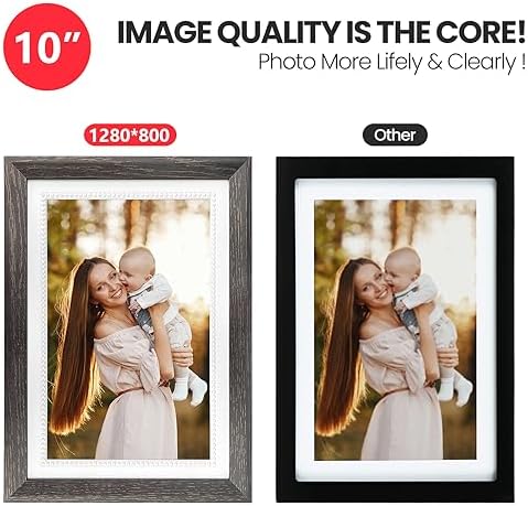 [Extraordinary Picture Quality] The Frameo 10.1 inches wifi digital picture frame has an extraordinary picture quality with its 1280×800 resolution, delivering stunning, clear images and an exceptional visual experience from wide angles. The IPS technology provides a wide viewing angle and accurate color reproduction, so you can enjoy your cherished moments to the fullest.