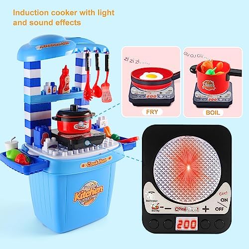 【Realistic Kitchen Toys】The electronic play induction hob with lights and sounds, and kettle that can be filled with water and spout can be pulled out, create a realistic cooking experience. The set encourages imagination, dexterity, and creative play, teaching your child to be a little helper in the kitchen.