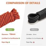 Widely Used: Our climbing rope can be easily rolled into a roll, and the drawstring bag can be easily carried with you. It is also very suitable for climbing, mountaineering, tree climbing, camping, hiking, downhill, hammock, swing, boating, caving, fishing, engineering, flagpole lanyard, tent guide line, escape speed drop, fire survival, dock rigging, Deck/pier railings, fitness and strength training, workout gym, etc., can become professional main ropes.