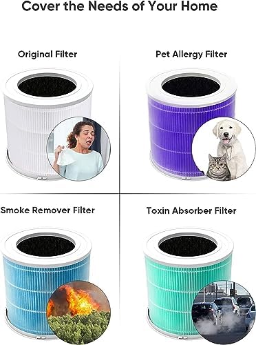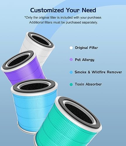 H13 True HEPA Technology for Pet Allergies: Adopt True HEPA Filter with H13 grade which meets the High-Efficiency Particulate Air (HEPA) standard. It filters the fine particles such as pet dander, dust mites, pollen, effectively helping reduce allergies.