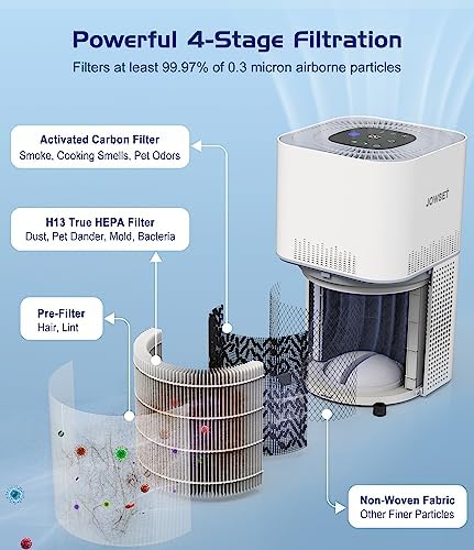 Home Tools & Home improvement JOWSET AP301/AP302/AP303 Air Purifier Replacement Filter, H13 True HEPA Air Purifier Filter for CADR 300+ m³/h Air Purifier, Activated Carbon, Original 1 Pack, White