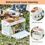 【Easy Access】: In order to facilitate your access to the inner items, the top and sides of this camp kitchen box can be opened for easy access even when stacked. The side door of the camping bin has an easy-to-open lock, which can be locked by pushing the lock to both sides when not in use.