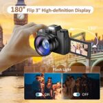 📸【Multifunction & Service】The digital camera can be connected to external tripods,microphones,and lenses.Digital camera is waiting for you to unlock a variety of functions,180° flip screen,16X zoom,flash light,beauty function.We extra provide a 2-year warranty,an 64G SD card,and 2 batteries.If you have any questions,please feel free to contact us,and we will reply to you within 24 hours!