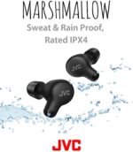 The JVC new Marshmallow trure wireless earbuds are comfortable and include S/M/L silicon earpieces and S/M Memory form earpieces for your ideal fit. The IPX4 rating offers water resistance to splashing, making this pair ideal for outdoor use. Bluetooth 5.3 technology ensures a dependable connection. These JVC wireless headphones come with a compact charging case, delivering up to 22 hours of playback.