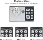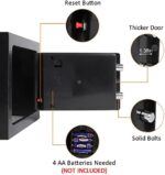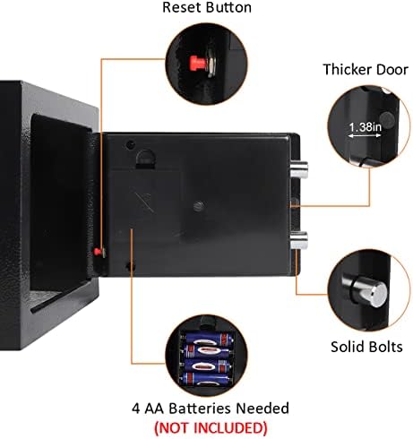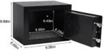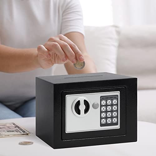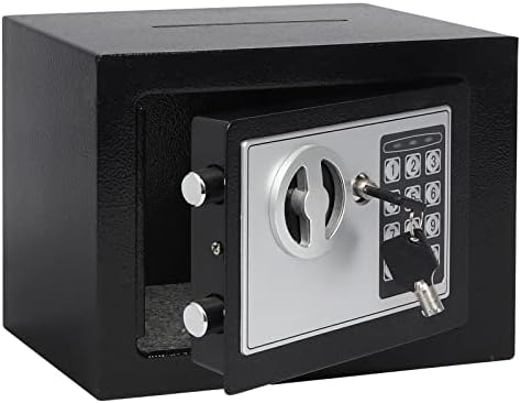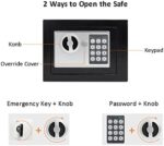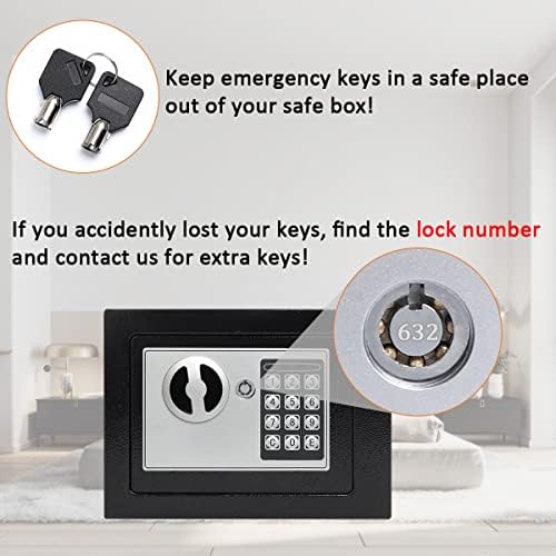 Size & Package: 0.17 cubic feet suitable for home office hotel. Exterior size 9.1×6.7×6.7 inches. Interior size 8.9×6.3×6.5 inches. Package includes 1*cabinet safe, 2*expansion bolts, 2*emergency keys, 1*instruction