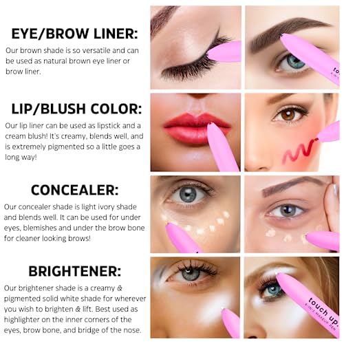 【4 NEW COLORS】CONCEALER: A Light-Ivory shade to brighten skin tone, cover blemishes, and can be used on brow bone for a precise brow. EYE/BROW LINER: a versatile brown color for all brows and can also be used as brown eyeliner! LIP/BLUSH: a pigmented and creamy red pink shade for touching up your lips and blush! A little goes a long way with this shade! BRIGHTENER: a pigmented white shade for the inner corners of the eyes, the brow bone, and for the bridge/tip of our nose for a snatched look!