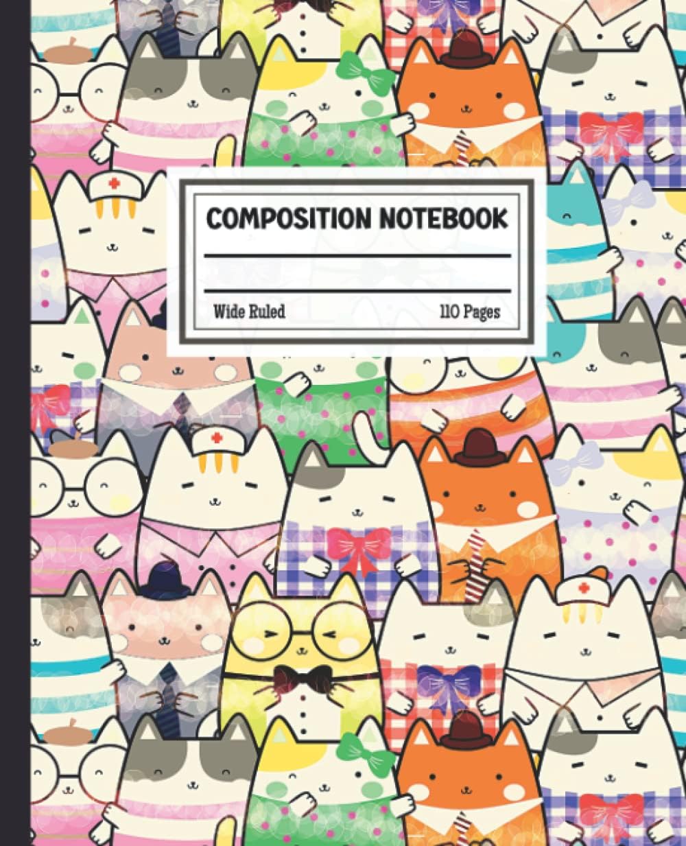 Kawaii Composition Notebook: Cute Kawaii Cats Lined Journal for School, Kids, Teens, and Students | Funny Colorful Cats | 110 Pages