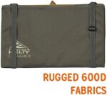 RUGGED EXTERIOR: 600D fabric weight basically makes the Window Seat an armadillo – puncture resistant, refuses to wear down, and can take a beating from cleats, high heels, spills, snow, rain, even dad’s handkerchief