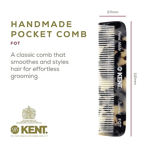 ABOUT KENT HANDMADE COMBS: Kent Handmade Combs for Men and Women Range are of excellent quality. Kent hand sawn combs are cut from large sheets of cellulose acetate rather than moulded, producing a truly gentle comb whereas moulded combs often snag and damage the hair. This material is tactile, flexible and strong. They glide effortlessly through hair without scratching to damaging the hair or scalp. Kent combs have rounded teeth which ensure a smooth and comfortable action. The range includes designs for thick and fine hair, in varying sizes, for both men and women. About Kent: Founded in 1777, Kent Brushes is the world’s oldest hairbrush manufacturer and has maintained its British traditions of producing the world’s finest hairbrushes and combs ever since. Making the best quality brushes for over 230 years and creating over 250 products. Quality, design and attention to detail go into each brush. They have been the holders of The Royal Warrant through the last nine consecutive reigns of British monarchy. The company continues to retain the craftsmanship and unprecedented quality that is Kent’s reputation.Even in today’s fast moving, mass-produced assembly lines, they are proud to still be manufacturing many of their original brushes by hand.