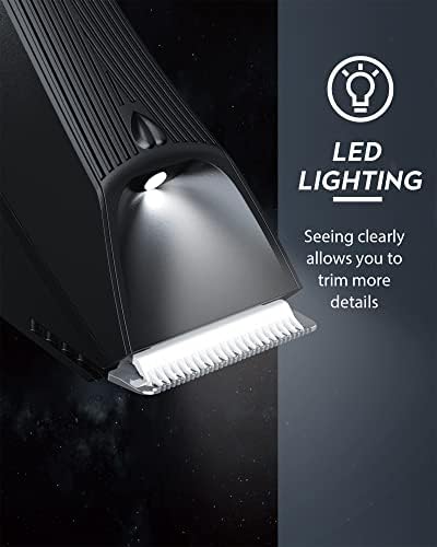 LED light and display screen – The LED light shines on the area you are trimming, allowing you to trim body hair with greater detail. The remaining battery indicator on the display screen lets you know exactly when it’s time to charge the trimmer and whether the battery has enough power for your next body hair trimming session