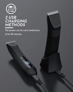 Long-lasting battery life – With a full charge, the hair trimmer can be used for 90 minutes, so you don’t have to charge it frequently. The charging dock included in the set prevents the hair trimmer from slipping off the table while charging horizontally, and also keeps your desk tidy. Of course, you can also charge it directly with the included USB cable