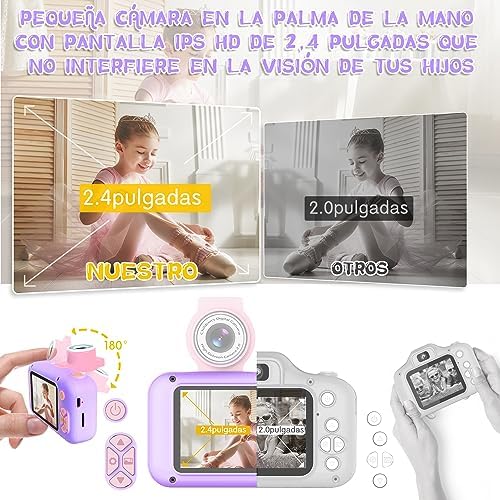 【2.4in IPS Screen&More comfortable】The mini body is equipped with a 2.4 inch IPS HD screen (other suppliers only have a 2 inch screen) to provide your child with 1080p high-definition pixels; The larger botton is more comfortable for children’s hands.