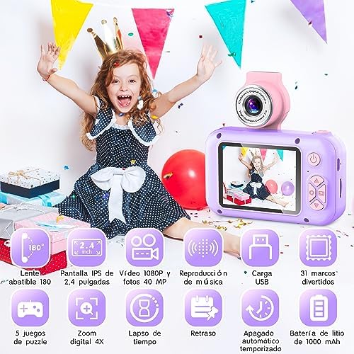 【31 Funny Frame&5 Puzzle Game】1000 mA large capacity battery supports 2-4 hours of battery life (600 mA for all children’s cameras on the market); 5 kinds of puzzle games stimulate children’s thinking and exercise their thinking; Although the pixel is not as clear as the digital camera, the 1080P is enough to meet the needs of children. 31 kinds of interesting picture frames and filters make children’s photos more interesting.