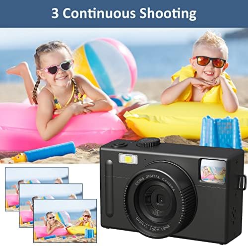 【Selfie & Continuous Shooting】This digital camera has a built-in 2/10-second delayed shooting mode which is great for selfies. You can also adjust through the mirror at the back of the screen to get the perfect picture. The camera also supports 3 continuous shooting functions, so you don’t need to worry about missing any of the wonderful moments you have. You can choose the best photo of these to keep!