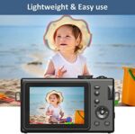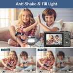 【Anti-Shake & Fill Light】: This mini digital camera has an anti-shake system that maintains the camera’s amazing performance while moving, letting you enjoy your photography time. This small camera has an LED fill light to provide auxiliary lighting which helps reduce the impact of poor lighting in a low light environment.