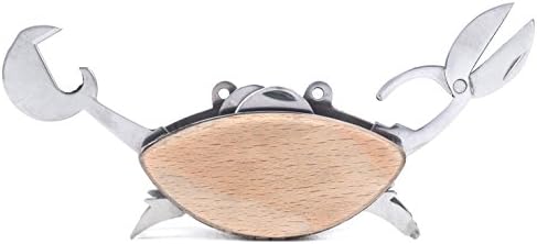 Kikkerland Stainless Steel Beechwood Crab Compact EDC Multi Tool – 6 Tools