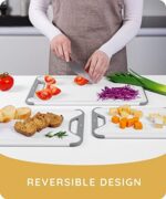 🎨 VERSATILE DESIGN! Cutlery lovers adore this set of premium cutting boards for kitchen use due to their sturdy construction, incredibly hard-wearing surface, and stunning aesthetics! These versatile plastic cutting boards can be used for cutting, chopping, slicing, and even entertaining. Thanks to their non slip cutting board design, you can prep without the fear of your board sliding as you chop too!