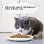 [WITH 3 SLICONE MATS] : Those pottery cat plates come with 3 nonslip mats in grey to stop the cat dishes sliding or moving around and keep the cat food dish in place, preventing food mess and stain spilled onto the floor and keeping your valuable floor clean and unscratched.