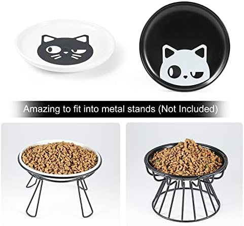 [CUTE AND STYLISH] : This cat bowl set is stackable and adorable with a cat head image and comes in black and white to be as great kitchen decor or fit a metal or wooden cat bowl stand.