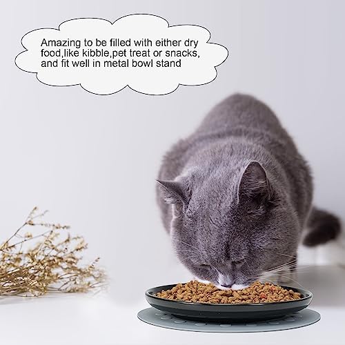 [PERFECT SIZE] : This cat food bowl measures D6” x H0.8” and can hold about 2 cups of dry kibbles, wet or canned food, pet treats, or snacks for kittens, short legged indoor cat,munchkin cats, napoleon cat breeds, small dogs, rabbits, hamsters, and other little pets without having to refill constantly.