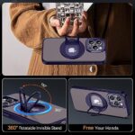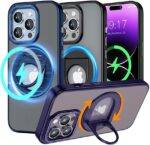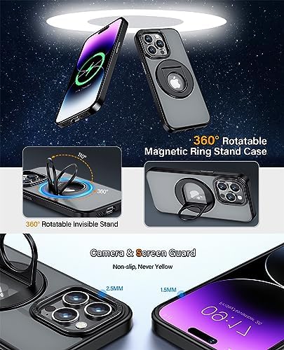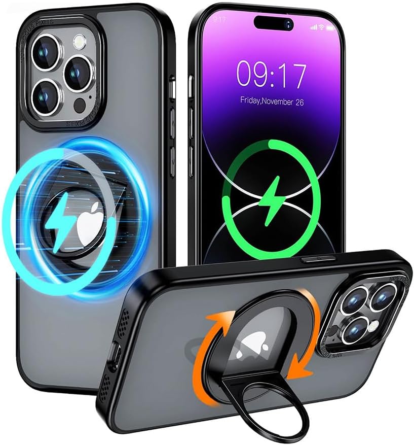 Magnetic Case for iPhone 15 Ring Case Compatible with MagSafe Wireless Charging Kickstand Shockproof Matte Translucent Case