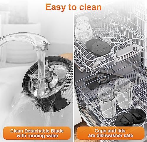 Detachable 304 Stainless Blades: The upgraded 6-leaf cross and 2-leaf flat blades allows the smoothie maker & grinder to blend and extract nutrients easily. Detachable blades are easy to clean. Cups and lids are dishwasher-safe.