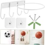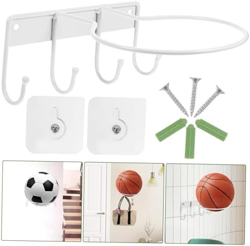 KOMBIUDA Storage Shelves Basketball Hoop Basketball Display Stand Balls Display Holder Multi-Purpose Balls Holder Wall-Mounted Basketball Rack Balls Rack White Iron Multifunction Goal