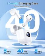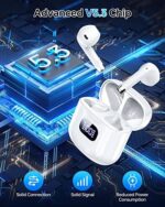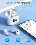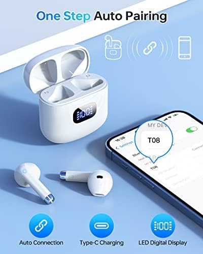 [Latest Bluetooth 5.3 One Step Auto Pairing]: T08 Bluetooth Earbuds are equipped with the latest technology of Bluetooth version 5.3, which has more stable transmission, lower power consumption and offers extended range with fewer dropouts than Bluetooth 5.1, providing you with an uninterrupted calling and music experience. Once paired for the first time, simply take the two wireless earbuds out of the charging case, they will automatically pair. Compatible for iOS/Android/Windows devices.