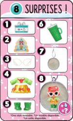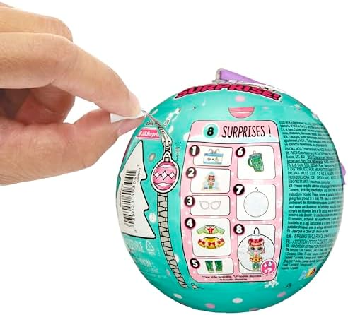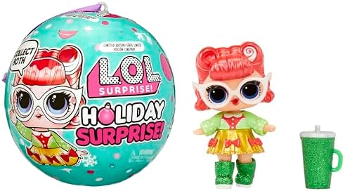 8 SURPRISES: Includes: (1) 1 Limited edition L.O.L. Surprise! Holiday Present Surprise doll; (2) Outfit; (3) Shoes; (4) Bottle; (5) Accessory; (6) Sticker; (7) Secret Message; (8) Ornament Ball