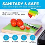 VIBRANT VERSATILITY – The set comes with six color-coded flexible cutting mats, each measuring 12 x 15 inches. The vibrant colors serve as a visual aid for distinguishing between different food groups, such as meats, fruits, vegetables, and more. This organization minimizes cross-contamination, allowing you to maintain the utmost hygiene while preparing meals.