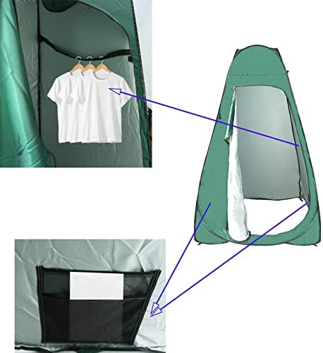 ✅【Easy to Use】 Our bathroom tent does not have a complex installation process, and anyone can easily assemble it. The floorless design keeps the outdoor shower tent clean, with a double zip door design for easy access and built-in pockets for daily necessities.