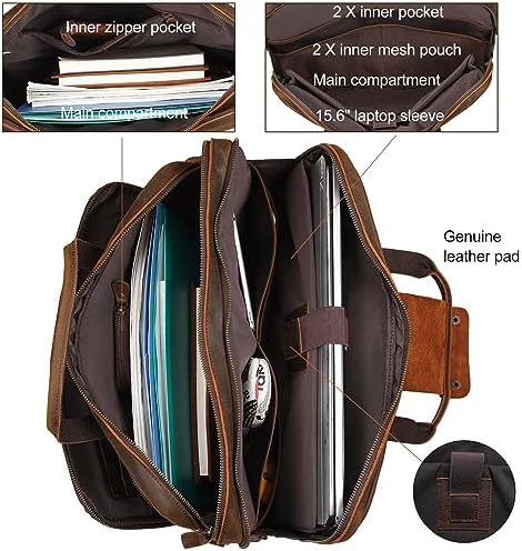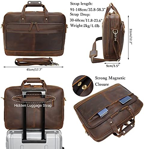 17 Inch Laptop Leather Briefcase Business Office Work Bag for Men