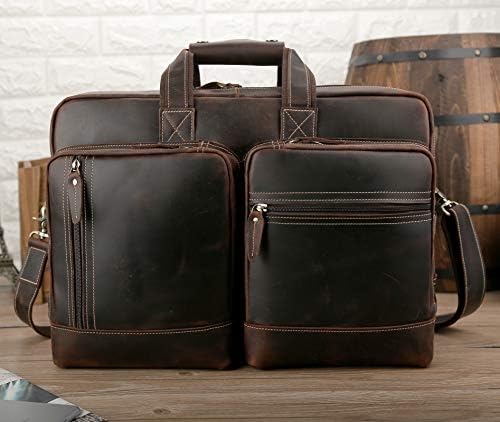 Home Luggage & Travel Accessories Briefcases Leather Briefcase for Men Expandable Large 17 Inch Laptop Crossbody Shoulder Bag Business Travel Duffel Attache Case