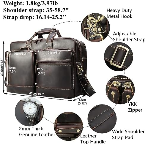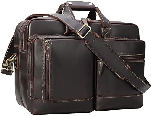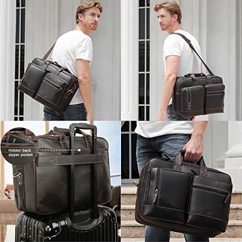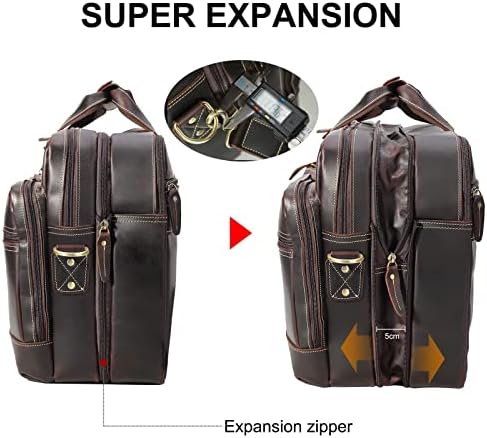 Leather Briefcase for Men Expandable Large 17 Inch Laptop Crossbody Shoulder Bag Business Travel Duffel Attache Case