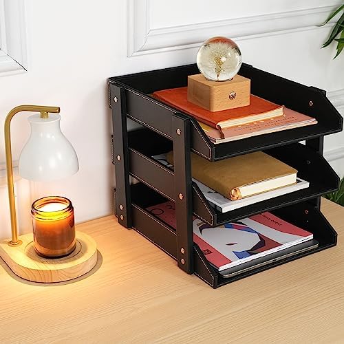 Declutter Your Desk with Style – Introducing Our 3-Tier Stackable Leather Desk Paper Organizer!