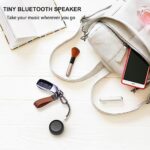 【Portable Smallest Design】:This mini Bluetooth speaker weighs about 0.74 ounce and has a diameter of 1.4 inches and a height of 1 inches,that they are just the size of an coin; they can easily fit into your pocket or be tied to a key chain for you to take them virtually anywhere.