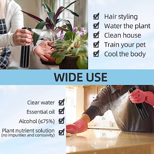 Moderate Size & Portable – Of 10oz/300ml volume, the mist spray bottles can hold water, essential oil, disinfecting alcohol, etc. Full of liquid at one time, enough for many hairdressing, flower watering, cleaning activities and more.