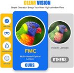 ★ Crystal Clear View: The FMC prism green coated optics system can control optical reflection to create crisp and colorful images. The product ensures the user can see the entire visual field for capturing objects easily with 7.2° viewing angle. Multi-layer broadband coating technology, make you see the scene more realistic.