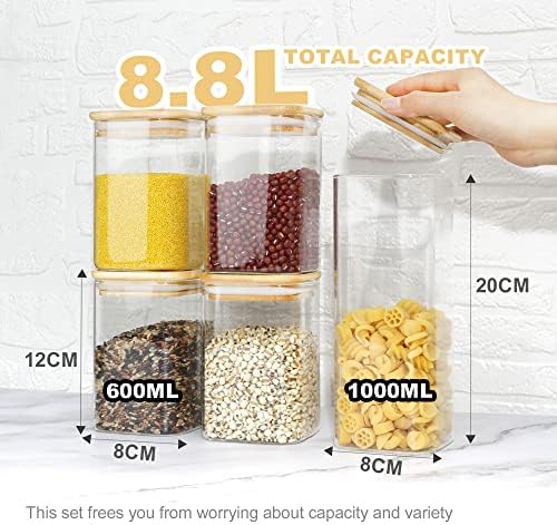 🧀🧀BEAUTIFUL SQUARE BAMBOO LID – The square storage jars impress with their bamboo lid. With the attractive combination of bamboo and glass, you can upgrade your kitchen furnishings in no time and drawers will give you an even better overview.