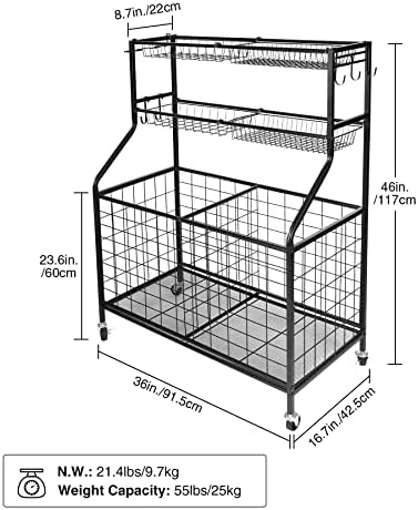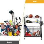 【Many Occasion Application】This sports equipment storage rack is great for garages, basements, gym, schools and any other workplace. Convenient to use and store, wonderful for garage storage and toy organizer.