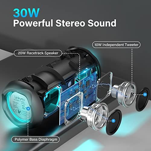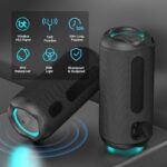🎶【TWS Function & LED Light Show】This portable wireless speaker supports TWS connection, pairs 2 speakers then achieve a truly powerful surround sound effect. The combined output generates excellent full stereo effect, no exaggeration and less than 5% distortion rate. While you enjoy music, the LED light will change the color with the beat of your music, truly brings you a party atmosphere.
