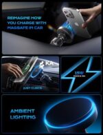 Pioneering Wireless Car Charger Marquee: This innovative device is designed to offer not only outstanding performance but also a unique and aesthetically pleasing experience for all users. It is a trailblazer, setting new standards in the industry and expanding the boundaries of what a car accessory can do. A pioneering product that seamlessly integrates MagSafe magnetic charging technology.